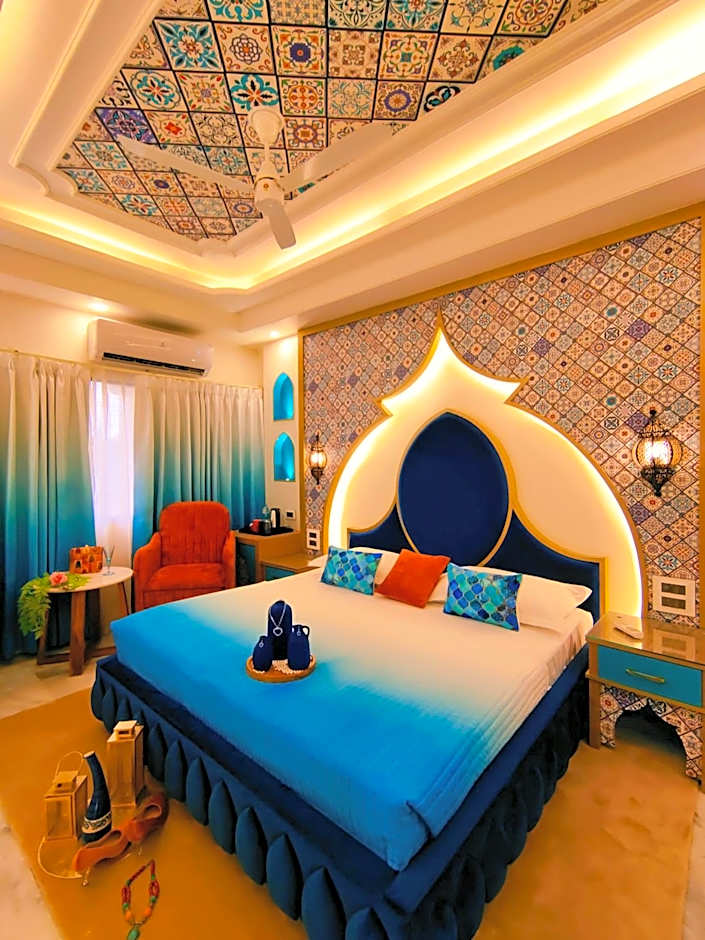 Jaipur’s Sarang Palace offers a regal escape just 1,5mi from the city’s hustle and bustle. After a day of sightseeing, take a dip in a private pool or unwind with spa/wellness packages, then step onto the terrace to toast a sunset. Free on-site parking and complimentary Wifi make planning a breeze, while a 24-hour front desk, air conditioning, soundproof rooms, and non-smoking options add extra comfort. An on-site restaurant and room service keep dining easy, and the overall vibe stays warm with thoughtful touches throughout.
